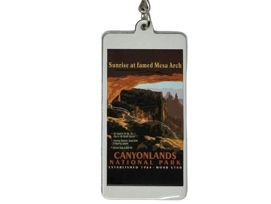 Arches & Canyonlands Retro Ranger Embossed Keychain Regular price $4.99 Sale price $4.99 Sale Unit price /per (15% off for members) Shipping calculated at checkout. Default Title Quantity Error Quantity must be 1 or more Add to cart This item is a recurring or deferred purchase. By continuing, I agree to the cancellation policy and authorize you to charge my payment method at the prices, frequency and dates listed on this page until my order is fulfilled or I cancel, if permitted. Adding product to your cart Carry two Utah landmarks in your pocket with this double-sided metal keychain. One side features Delicate Arch from Arches National Park, while the flip side showcases Mesa Arch in Canyonlands Island in the Sky District. Size: 2-1/2 x 1-1/4 inches #6585 Back to New Product